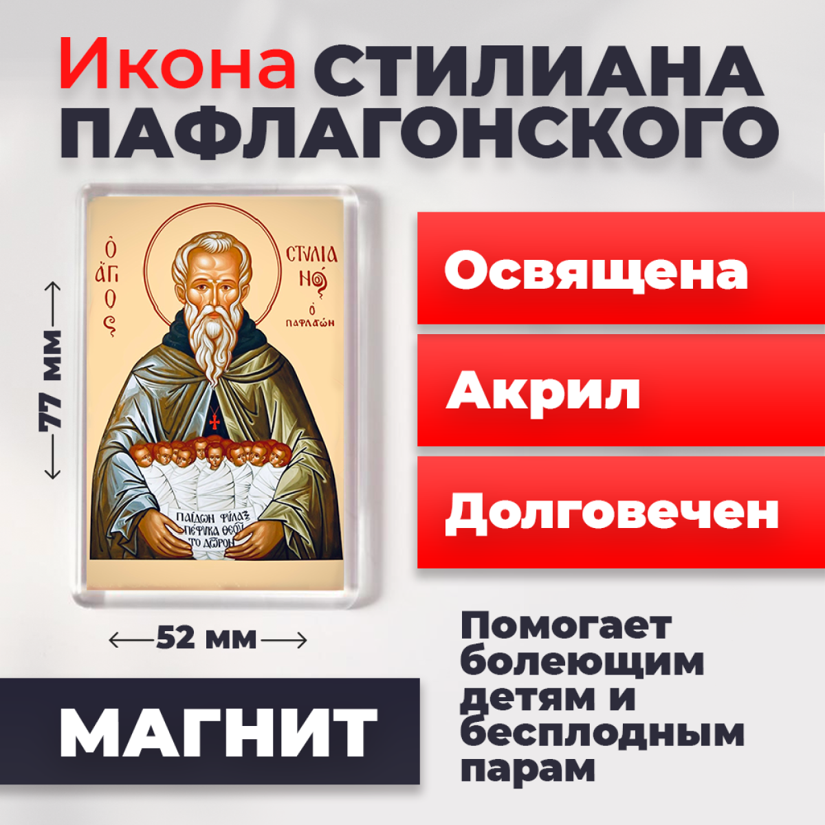 Купить Освященная икона на магните "Святой Стилиан Пафлагонский" Стилиан_Паф3 по лучшей цене с доставкой - интернет магазин №1 в России